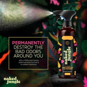 - Poderoso purificador de ar e spray eliminador de odores – Naked Jungle é um spray com patente pendente, eliminador de odores à base de plantas que destrói permanentemente odores em um nível molecular. Não mascaramos o odor, matamos na fonte. Basta agitar bem e pulverizar generosamente no odor ofensivo e no ar circundante para eliminar cheiros repulsivos completa e imediatamente.