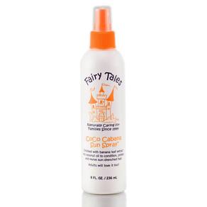 O que é: Construa uma barreira de proteção ao redor do cabelo. Repleto de óleo de coco, extrato de jojoba e banana para hidratar cabelos secos e quebradiços danificados pelo sol. As opções de produtos disponíveis são as seguintes: Tamanho: 8 onças - Spray solar Leave-in Coco Cabana da Fairy Tales;