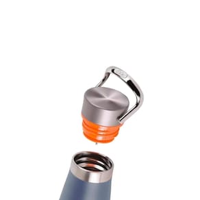 A tampa do squeeze é tratada com fios de aço inoxidável e a camada interna da tampa é feita com material de qualidade alimentar PP, além de possuir selagem de silicone para evitar vazamentos. Na parte frontal da tampa, o logo de silicone anti-colisões foi posicionada estrategicamente para riscos ao produto, preservando a elegância do design. Uma alavanca portátil de elevação, foi pensada para te auxiliar a carregar facilmente o squeeze, dando ainda mais sentido a função portátil. Por falar em design, o minimalismo prevalece e valoriza a pegada confortável e aparência diferenciada, através do aço espelhado com nível de brilho equilibrado. O corpo do squeeze foi tratado com spray eletroestático, para aumentar a aderência e evitar que o produto deslize da sua mão. Consuma seus líquidos com qualidade e livre de qualquer químico ou plástico prejudicial.