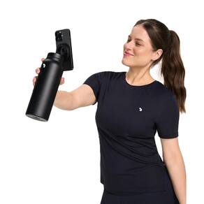 Garrafa térmica em aço inoxidável com tampa de rosquear, possui tecnologia de imã que permite utilizar como suporte para celular, além de conservar a temperatura quente ou gelada por horas. Conta com detalhes de personalização da marca em prata refletivo. Capacidade de 700ml.