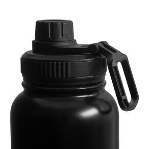 Produzido em aço inoxidável e tampa em plástico, com capacidade para 1 L, com paredes duplas que prolongam a temperatura do líquido, com vedação em rosca e acabamento liso.