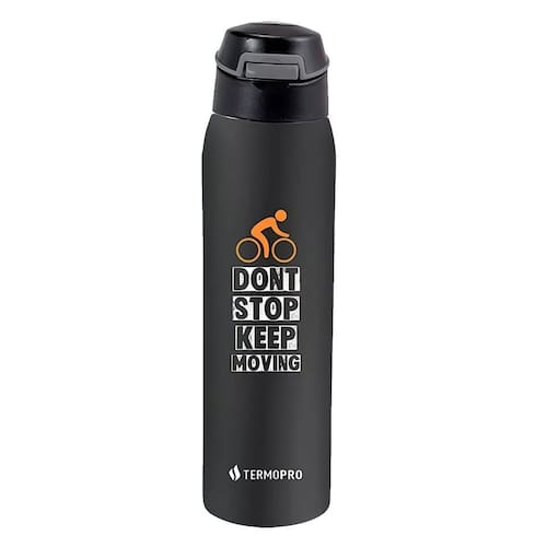 Produzido em aço inox de qualidade, que conserva as bebidas quentes e frias por muito mais tempo, 6h e 12h, respectivamente, o Squeeze Térmico Sport Fitness da Termopro combina com você! Durável e resistente, possui botão de abertura fast click, botão de silicone anatômico que facilita nas praticas esportivas e ampola térmica com dupla camada em aço inox. Também acompanha embalagem presenteável.