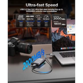 - Velocidade superior: obtenha transferências de dados extremamente rápidas com velocidades de até 2000 MB/s, garantindo que seus arquivos grandes e vídeos de alta resolução sejam movidos de forma rápida e eficiente, eliminando qualquer tempo de espera