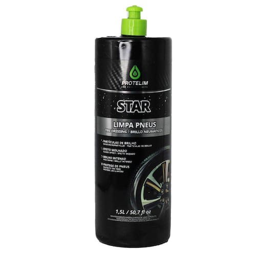 O Star foi desenvolvido para dar brilho especial e conservar os pneus de automóveis, caminhões, ônibus e outros, proporcionando proteção prolongada e deixando os pneus com aspecto de novo e com alto brilho. Sua fórmula contém micropartículas de brilho. PROTELIM STAR é um pretinho Premium, criado especialmente para os aficionados por estética automotiva.
