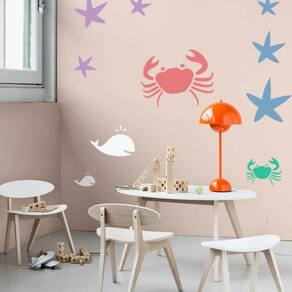 Stencil de Parede Animais Marinhos - O universo de criação com Stencil está cada vez mais forte e potencializado, devido a criatividade dos profissionais especializados em criar ambientes, peças e produtos incríveis Com o Stencil da Tamako você pode transformar e personalizar seus próprios ambientes, decorando paredes, tetos, pisos, vidros ou móveis, seja em casa, no trabalho ou onde sua imaginação te levar.