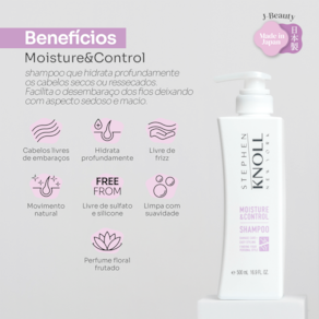 O Shampoo Stephen Knoll Moisture & Control facilita o desembaraço dos fios, deixando com aspecto sedoso e macio. Tem alto poder de alinhamento dos fios e redução de frizz.