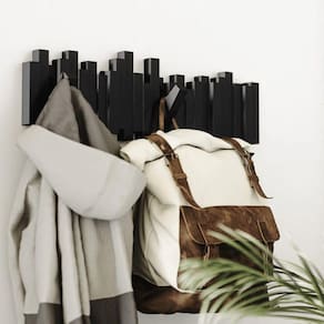 O Cabideiro Multi Hook Sticks é um cabideiro exclusivo para montagem na parede, suporte para chapéus e cabideiro que oferece 5 ganchos e um amplo espaço para pendurar em sua casa ou escritório.
