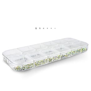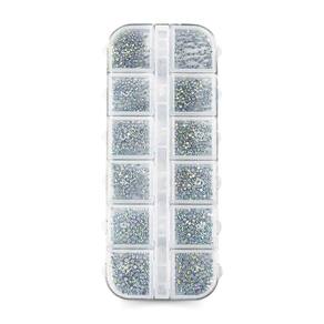 Contém: 01 - caixa com 12 divisórias, com strass pequenos, furta-cor, diversos tamanhos.