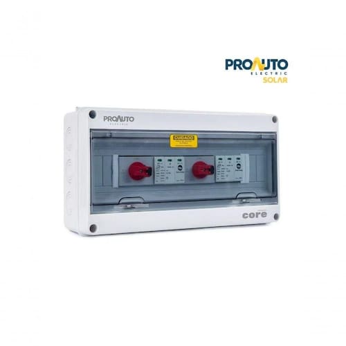 String Box Proauto 4.2e/4.2s 1040vcc - 2 MPPT: - 2 Entradas MPPT1; - 2 Entradas MPPT2; - Fabricado com alto padrão de qualidade; - Todos os componentes possuem certificados; - Proteção das caixas: UV (conforme norma IEC 60529); IP65;CARACTERÍSTICAS GERAIS: Grau de Proteção: IP65 Material: ABS Termoplástico Tipo de montagem: Sobrepor Temperatura de armazenamento: -25C/+90 Umidade relativa do ar: Até 90% Altitude máxima de operação: 1000 Metros Dimensões (A x L x P): 200 x 310 x 110 Grau de resistência mecânica: IK08 Tipo de fixação: Trilho de FixaçãoCARACTERÍSTICAS TÉCNICAS: ID Produto: 26026 Quantidades de entradas: 2/4 Quantidades de saídas: 2/4 Quantidade de MPPT: 2 Tensão nominal máxima: 1040VDC Corrente nominal máxima: 4x20A Corrente do fusível: N/D Modelo seccionadora: ES150 Quantidade de seccionadora: 1(dupla) Topo de Conexão de entrada: Borne Bitola máxima do cabo da entrada: 6 mm Bitola máxima do cabo de saída: 6 mm Tipo de conexão de saída: BorneDPS Tensão nominal rede: 1040VDC Tensão máxima de funcionamento: 1040VDC Tipo de proteção: Classe 2 Quantidade de DPS: 2 Corrente de descarga nominal(In): 20kA Corrente de descarga Máxima(Itotal): 45kA Nível de Proteção(Up):<3,5kV String Box Proauto 4.2E/4.2S 1040Vcc - 2 MPPT: - 2 Entradas MPPT1; - 2 Entradas MPPT2; - Fabricado com alto padrão de qualidade; - Todos os componentes possuem certificados; - Proteção das caixas: UV (conforme norma IEC 60529); IP65;CARACTERÍSTICAS GERAIS: Grau de Proteção: IP65 Material: ABS Termoplástico Tipo de montagem: Sobrepor Temperatura de armazenamento: -25C/+90 Umidade relativa do ar: Até 90% Altitude máxima de operação: 1000 Metros Dimensões (A x L x P): 200 x 310 x 110 Grau de resistência mecânica: IK08 Tipo de fixação: Trilho de FixaçãoCARACTERÍSTICAS TÉCNICAS: ID Produto: 26026 Quantidades de entradas: 2/4 Quantidades de saídas: 2/4 Quantidade de MPPT: 2 Tensão nominal máxima: 1040VDC Corrente nominal máxima: 4x20A Corrente do fusível: N/D Modelo seccionadora: ES150 Quantidade de seccionadora: 1(dupla) Topo de Conexão de entrada: Borne Bitola máxima do cabo da entrada: 6 mm Bitola máxima do cabo de saída: 6 mm Tipo de conexão de saída: BorneDPS Tensão nominal rede: 1040VDC Tensão máxima de funcionamento: 1040VDC Tipo de proteção: Classe 2 Quantidade de DPS: 2 Corrente de descarga nominal(In): 20kA Corrente de descarga Máxima(Itotal): 45kA Nível de Proteção(Up):<3,5kV String Box Proauto 4.2E/4.2S 1040Vcc