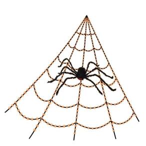 Teia de 16 pés que muda de roxo para laranja com aranha preta com luzes brancas puras. A teia expansiva com uma grande aranha preta cobre uma ampla área para facilitar a visibilidade à distância. Teia e aranha iluminadas para decoração assustadora à noite. Cabo de grafite longo para fácil conexão. Para uso interno e externo.