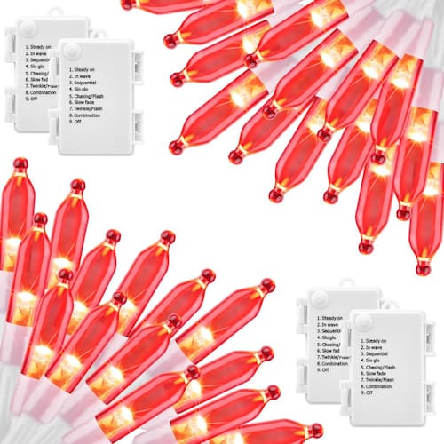 Luzes de Natal operadas por bateria pacote com 4 luzes de 2,8 m, 20 luzes LED em fio branco com 8 modos de luzes de árvore à prova d'água para decoração de árvore de Natal ao ar livre, interior, festa de férias, jardim, decoração de árvore de Natal, vermelho - ?Battery Operated?Powered by 3 AA batteries (not included), these fairy lights come in a pack of four with 8 feet and 20 mini LED strands. The 3.94 inch light spacing and water-resistant battery control box make them eco-friendly and energy-saving. Run time depends on battery quality and usage - ?Easy Installations?Featuring flexible cords that can be easily wrapped or twisted around trees, banisters, or anywhere desired indoors or outdoors, these fairy lights are easy to install using a cable tie or cup hook. Fix, place, position, or hang them anywhere you like - ?Manual Operation?Select from 8 stunning lighting effects to customize your occasions and events. With a simple button press, choose from combinations, wave, sequential, slow glow, chasing/flash, slow fade, twinkle/flash, or steady on - ?Expected Occasions?Create the perfect ambiance for your home or special events such as Valentine's Day, New Year, birthday parties, dinner parties, balls, discos, and stages. These versatile fairy lights can be used in bedrooms, living rooms, gardens, patios, hallways, balconies, pavilions, and more. They also make a wonderful gift for family, friends, and relatives - ?Waterproof and Durable?Made from premium cables with waterproof and energy-efficient LED bulbs, these fairy lights are built to last. They are perfect for outdoor use and hassle-free décor. Make your space come alive with these beautiful and durable fairy lights