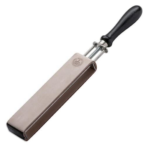 O Boker Spanner Strop com dupla face ajustável é ideal para afiar lâminas e Navalhas de ambos os lados. O pré e o acabamento final podem ser realizados em duas superfícies diferentes com diferentes pastas abrasivas. O lado de couro sem pasta é destinado ao acabamento final. A construção elástica faz deste produto uma alternativa perfeita para o popular pendurador. Inclui selo Boker autêntico na frente. Área de trabalho: 4,0 x 18 cm