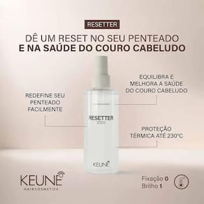 Quais os Benefícios do Keune Style Resetter Spray Creme 1. Redefinição do Penteado; 2. Tecnologia Avançada; 3. Proteção Térmica de até 230C; 4. Cuidados com o Couro Cabeludo; 5. Prevenção da Queda.