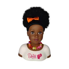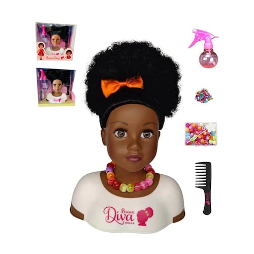 - Boneca negra africana marrom com cabelo encaracolado natural.