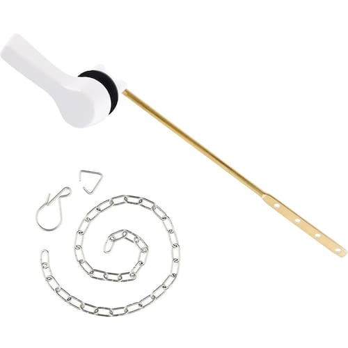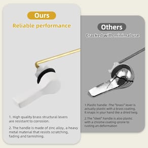 Alavanca de tanque de vaso sanitário de latão de montagem universal: Esta alavanca de latão resistente incorpora correntes melindrosa, combina estrutura de latão sólido com chave cromada. Oferece durabilidade e resistência à corrosão. Compatível com banheiros Kohler, American Standard, TOTO, Mansfield e Gerber. Adequado para a maioria dos banheiros com alavanca de descarga de montagem frontal. - Kit de substituição de alça de vaso sanitário de montagem frontal: Design universal para caber na maioria dos tanques de vaso sanitário de montagem frontal, proporcionando uma fixação fácil para a alça de descarga do vaso sanitário. Existem quatro furos na extremidade da alavanca para ajuste flexível do comprimento para se adequar ao tanque do vaso sanitário - Informações de tamanho: A alavanca do tanque de vaso sanitário serve para o tanque de vaso sanitário de montagem frontal. Largura da chave: aproximadamente 7,3 cm/2,87 polegadas. Comprimento da alavanca: aproximadamente 21 cm. Correntes melindrosa: 35,3 cm/13,9 polegadas - Lavagem de vaso sanitário de alta eficiência: a combinação de alça de tanque de vaso sanitário de latão e corrente de melindrosa de aço inoxidável oferece uma solução confiável para a configuração do vaso sanitário. Com foco na funcionalidade e durabilidade, este kit é uma seleção ideal para melhorar o vaso sanitário - Fácil de instalar: A alça resistente é projetada para durabilidade e instalação sem esforço, sem necessidade de ferramentas. Observe que se o ângulo da descarga for muito grande, você pode ajustá-lo manualmente - Ampla compatibilidade: É compatível com marcas como Kohler, TOTO, American Standard, Fluidmaster, Eljer, Delta, Mansfield, Jacuzzi, Glacier Bay etc. Atualize seu banheiro com uma substituição de alavanca de descarga para uma mistura perfeita de forma e função