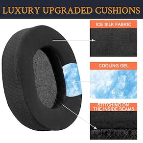 🎧 Mantenha seus ouvidos frescos durante os dias quentes de verão com nossos fones de ouvido! Adicionamos um gel refrescante macio sob a camada superior do tecido respirável Ice Silk para absorver o suor e manter você confortável durante longas sessões de audição.