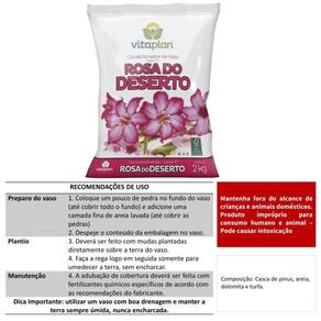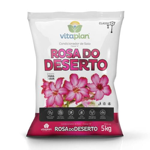Substrato para Rosa do Deserto (5Kg) VITAPLAN Descrição * Preparo especialmente criada para o cultivo de rosa do deserto.* Elaborada a partir de uma mistura de casca de pinus, areia, dolomita e turfa.* Fórmula ideal para estimular o desenvolvimento de sua planta.* Fortalecer as raízes e sua fixação e também o desenvolvimento de suas folhas e flores. Características * Matéria prima: casca de pinus, areia, dolomita e turfa. * Natureza Física: Farelado grosso * Peso Líquido: Embalagem de 5kg Informações/Dicas/Usos * Fornece às suas rosas do deserto as condições ideais para um crescimento saudável, fortalecendo suas raízes, folhas e flores. Nós da CULTIV.ME trabalhamos desde 2013 para trazer os melhores produtos ao alcance de todos. CULTIV.ME o verde que faltava!