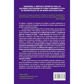Subversivas é uma obra filosófico-pragmática destinada às mulheres para transformar a sociedade e vivenciar na prática a luta pelos seus direitos. Gisèle Szczyglak, Ph.D. em Filosofia Política, com pós-doutorado em Sociologia Política e Ética Aplicada, mostra que a civilização foi confiscada das mulheres e, como consequência, a percepção feminina sobre o mundo, assim como o papel de si mesmas são distorcidos. Para a autora, o caminho para virar este jogo é a subversão. Gisèle analisa como ao compreender as regras impostas pela sociedade e a cultura vigentes, as mulheres podem redirecioná-las para além da reivindicação – para assim conquistar a plena igualdade de direitos. A autora ainda afirma que, depois de ancoradas na subversão, as mulheres serão capazes, junto com os homens, de fazer com que o feminismo de fato aconteça como um novo humanismo. Um guia para levar às mulheres ao esclarecimento do motivo por que ainda são expostas a situações difíceis ou sofrem impasses em sua vida profissional e pessoal.