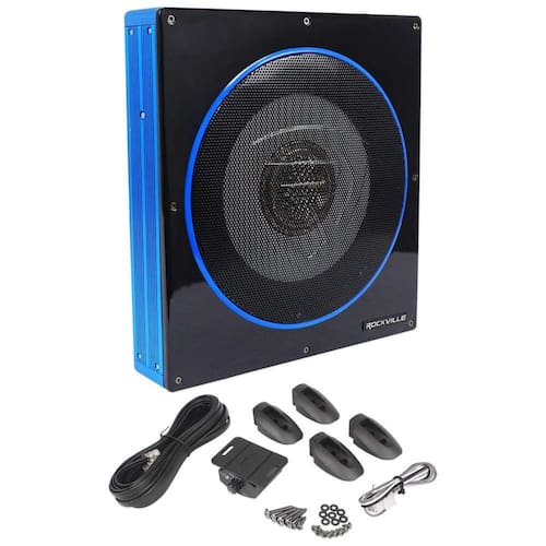 Rockville RW10CA Subwoofer Slim para carro de 800 Watts e Pico de 800 Watts , 200 Watts RMS. Fonte de alimentação PWM MOSFET. Entrada RCA de baixo nível. Entradas de alto nível com tecnologia de otimização automática. Sensibilidade de entrada. Ativação remota com atraso suave. Circuito de proteção térmica, circuito de proteção contra curto. Circuito de proteção contra sobrecarga. Chave de fase 0 graus ou 180 graus Filtro passa baixas 50Hz 150Hz. Aumento de graves 0 18dB 45Hz. Controle remoto de nível de subwoofer. Filtro subsônico integrado a 29Hz. Resposta de frequência 20Hz 150Hz. Sensibilidade 90dB 1w , 1m. Potência máxima RMS 200 Watts. Impedância 2 Ohm. Dimensões 31 x 34 x 6 Centímetros Marca: Não Informado