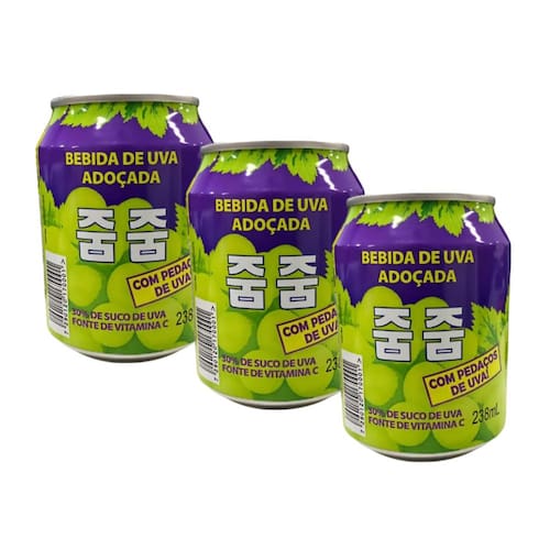 KIT COM 3 LATINHAS DE SUCO DE UVA COM PEDAÇOS JUMJU IMPORTADO DA CORÉIA COM 238 MILILITROS CADA.