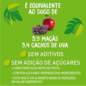 Produto: Suco de Uva 100% Natural One Volume: 900ml Ingredientes: Suco de uva reconstituído 51% e suco de maçã reconstituído 49% . Não contém glúten. Conservação: Não necessita refrigeração antes de abrir. Após aberto, manter refrigerado e consumir em até 48 horas. Informações complementares: Suco de uva natural e refrescante, produzido com frutas frescas. Preserva o sabor autêntico das uvas e proporciona uma experiência única de sabor. Ideal para desfrutar a qualquer momento e em qualquer lugar, oferecendo o melhor da natureza em forma de suco.