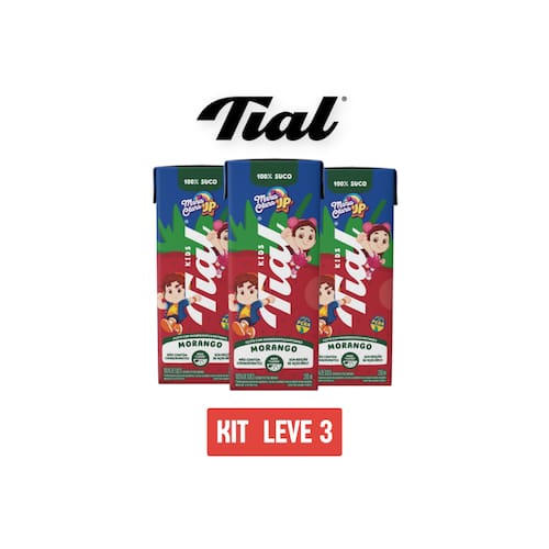 Suco Tial Kids 100% Morango Maria Clara e JP 200ml - Kit 3 Unidades