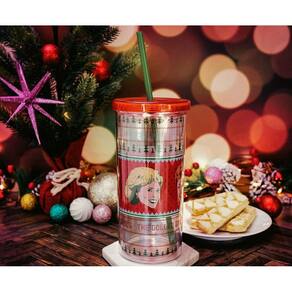 - REÚNA-SE EM VOLTA DA PALMEIRA: A equipe de comédia está reunida e pronta para a temporada boba neste copo festivo. Retratos estilizados de suas amigas favoritas aparecem em um padrão de suéter de Natal que é ao mesmo tempo alegre e brilhante.
