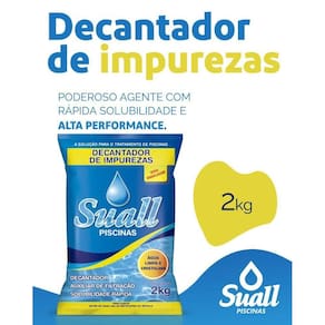 Sulfato alumínio tratamento de piscina suall decantador 2kg Sobre o produto: O sulfato de alumínio é indicado para decantar a água da piscina em conjunto com a barrilha leve. A manutenção do ph correto reduz a quantidade de cloro necessária à desinfecção da piscina. Instruções de uso para piscinas:1. Confira o ph da água que deverá estar na faixa 7,2 á 7,6. Acerte se necessário.2. Ligue o filtro com a alavanca na posição recircular.3. Dissolva sulfato de alumínio em um balde com água de acordo com a tabela de adição e espalhe sobre a superfície da piscina.4. Dissolva a seguir barrilha leve de acordo com a tabela de adição conforme as instruções na embalagem do produto e recircule por 1 hora.5. Desligue o filtro, deixe a água em repouso por 12 á 24 horas para que as impurezas sejam decantadas.6. Aspire o resíduo do fundo da piscina com o filtro na posição drenar.7. Faça a cloração de rotina diariamente ou a cada 2 dias.Atenção: uso exclusivo em piscinas. ======Precauções:Conserve fora do alcance das crianças e dos animais domésticos.Evitar o contado do produto concentrado com os olhos e a pele.Evitar a inalação do produto concentrado.Evitar a mistura deste produto com quaisquer outros, inclusive com os de piscina.Enxaguar a embalagem antes de descartá-la. ======Medidas do produto: Comprimento: 25 cmLargura: 17,5 cmAltura: 5 cmPeso: 2 kg