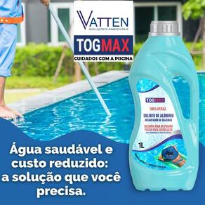 - 1 frasco de Sulfato de Alumínio Decantador de Sujeira de 1 Litro TOG MAX - Instruções de uso e armazenamento inclusas. Ean: 7897830461520
