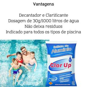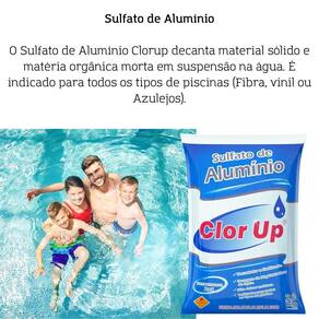 O sulfato de alumínio clorup decanta material sólido e matéria orgânica morta em suspensão na água. É indicado para todos os tipos de piscinas fibra, vinil ou azulejos .