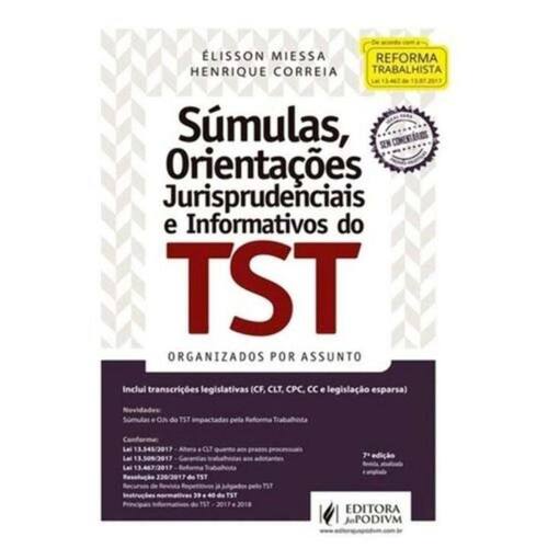 Conforme:- Lei 13.545/2017 - Altera a CLT quanto aos prazos processuais- Lei 13.509/2017 - Garantias trabalhistas aos adotantes- Lei 13.467/2017 - Reforma Trabalhista- Resolucao 220/2017 do TST- Recursos de Revista Repetitivos ja julgados pelo TST- Instru