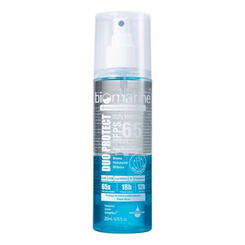 O Biomarine Protetor Solar Sun Marine Duo Protect FPS 65 é um protetor solar bifásico com alta performance, indicado para uso diário no rosto e no corpo. Combina proteção avançada com toque seco e rápida absorção, deixando a pele confortável e protegida ao longo do dia.Oferece Fator de Proteção Solar (FPS) 65 e PPD 25, ajudando a resguardar a pele contra os efeitos da radiação UVA e UVB. Resistente à água, proporciona até 18 horas de proteção e 12 horas de sensação de hidratação. Ideal para todos os tipos de pele, especialmente durante períodos de maior exposição solar.Benefícios e característicasFPS 65 com alta proteção contra raios UVA e UVBToque seco e rápida absorçãoFórmula bifásica inovadoraResistente à águaProteção prolongada de até 18 horasSensação de hidratação por até 12 horasIndicado para rosto e corpoTextura leve e confortávelAtivos presentesCarcinina – contribui para manter a pele com aparência uniforme e saudávelCaviar – ativo marinho que auxilia na hidratação e proteção contra agentes externosEnergenius - Proteção prolongadaModo de usoAgite antes de usar para misturar as fases. Aplique de maneira uniforme sobre a pele seca antes da exposição ao sol. Reaplique sempre que necessário.