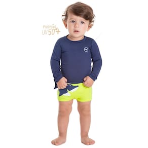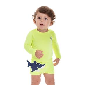 Deixe os pequenos explorarem o mar com estilo e proteção com esta sunga boxer de bebê da Costão. Em um vibrante amarelo neon, ela oferece proteção UV 50+ para garantir segurança sob o sol. O destaque fica por conta da divertida estampa de tubarão com um aplique de cauda que vai conquistar as crianças! Perfeita para dias na praia ou na piscina, esta peça une conforto, segurança e um toque de diversão.
