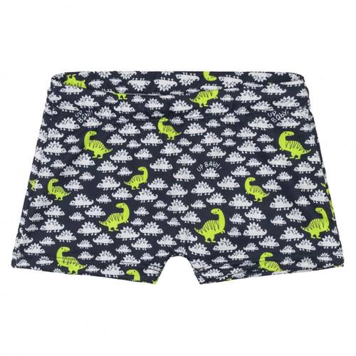 A sunga boxer bebê e Infantil Dinossauros Marinho da Up Baby é feita em Malha Poliéster UV FPS +50, possui estampa sublimada com motivo de dinossauros e tecnologia DRY secagem rápida, é antimicrobiana e hipoalergênica.