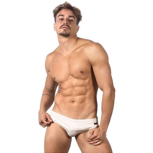 A sunga foi desenvolvida em tecido FLUITY feito com poliamida biodegradável, tem um toque suave no contato junto ao corpo, oferecendo outros atributos como: