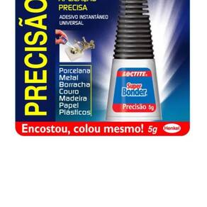 Adesivo instantâneo projetado para aplicações rápidas, variadas e pontuais. Super Bonder Precisão é resistente à umidade, como também ao choque e à temperatura, isso a torna excelente para aplicações em vasta gama de superfícies, transparente com adesão instantânea, tampa ante entupimento, Super Bonder Precisão embalagem com 5g.