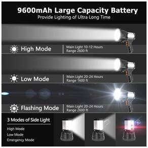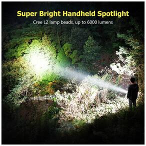 Lanterna de mão superbrilhante para serviços pesados a lâmpada LED CREE 2 super ultrabrilhante de 6000 lúmenes máximo produz um feixe de foco brilhante com uma faixa de distância de iluminação de mais de 2.600 pés , 854 m. A duração da bateria é superior a 20 horas. Existem 3 configurações adaptáveis alto , baixo , flash pressione longamente o botão por 3 segundos. Contanto que esta lanterna recarregável LED alimentada por bateria seja suficiente para iluminarmos toda a escuridão da noite. 6 modos de luz IPX4 luz de segurança superbrilhante à prova dágua Lâmpada principal Possui alto baixo flash 3 modos de brilho tornam no um holofote de longa duração, lanterna de alto lumens. A luz lateral multifuncional tem modos de alto baixo e a função de aviso de luz vermelha e azul permite que você use para trabalhar, acampar, caminhadas, pesca, luz de aviso como a luz piscante da polícia em tempo de nevoeiro e neblina. Pode ser utilizado como lanterna, regulador de refletor de barco recarregável para uso em diferentes situações. Lâmpada lateral do holofote externo as contas da lâmpada LED são distribuídas uniformemente na lateral do corpo da lanterna de alto lúmen. Se você precisar de observação atenta durante a manutenção, trabalho, leitura e caça, nossa lanterna com holofote suave é a mais perfeita, e a maior parte da luz forte vai machucar seus olhos. Você pode usá lo como uma luz de acampamento. Existem 3 configurações adaptáveis mais alto , baixo , vermelho e azul mantenha o botão pressionado por 3 segundos. Baterias potentes de grande capacidade e longa duração quando precisar delas, pare de procurar baterias que nunca existiram. Nossa lanterna grande é equipada com três baterias recarregáveis de íon de lítio 18650 de longa duração e duráveis 10000 MAH, que podem ser recarregadas mais de 1000 vezes. Nosso refletor de emergência também pode ser como uma biblioteca de fornecimento de energia de emergência para telefones inteligentes ou dispositivos móveis, trazendo a você muitas conveniências para viagens ao ar livre. Ele pode usar o plugue na parede. Inclui um tripé ajustável e dobrável para uso com as mãos livres. Rejeite materiais inferiores. Nossa lanterna de busca de alta potência é feita de material ABS de nível militar sólido e resistente a impactos e liga de alumínio, que pode evitar que o sistema caia e bata durante o uso. É um farol de trabalho de ferramenta de iluminação ideal para holofotes de holofotes para caminhadas, acampamentos, velejar ou de caça Marca: Não Informado