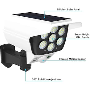 Super cameras sensor de presença prova dágua externo 7 cobs 42 super leds Super luminária solar sensor presença parede funções câmera 7 cobs 42 leds Proteja sua propriedade com a inovadora câmera placa solar detector de movimento externo. Esta luminária solar é mais do que apenas uma luz externa, é uma solução de segurança completa. Equipada com sensor de proximidade e tecnologia de detecção de movimento, esta câmera é alimentada por energia solar, proporcionando-lhe tranquilidade durante todo o dia. Com 42 leds e 7 cobs, esta luminária oferece uma iluminação brilhante e eficiente, enquanto seu design resistente às intempéries garante durabilidade em qualquer condição. A bateria de íon-lítio de 2800mah é recarregada em apenas 6-8 horas de exposição ao sol, mantendo-a pronta para a ação. Com três modos de sensor de movimento e um controle remoto conveniente, você tem o controle total sobre a segurança da sua casa ou estabelecimento. Não deixe sua segurança ao acaso, invista na câmera placa solar detector de movimento externo e proteja o que é importante para você. Essa câmera não grava ou filma, é uma camera fake luminaria solar fake Características: Fonte de energia: solar Quantidade de led: 42 Quantidade de cobs: 7 Detector de movimento: 2 a 3 metros de distância Recarga: 6-8 horas de exposição ao sol Bateria de íon-lítio: 3,7v 2800mah Resistência à água: ip65 Material: abs e componentes eletrônicos Sensor inteligente que desliga durante o dia Fácil de instalar 3 modos de sensor de movimento Distância de detecção de até 3m de altura Controle remoto incluso 4. Modo de usar: Instale a luminária em uma área externa com exposição adequada à luz solar. Certifique-se de que o sensor de movimento esteja livre de obstruções. Utilize o controle remoto para ajustar os modos de sensor conforme necessário. Ficha técnica: Leds: 42 Cobs: 7 Sensor de movimento: 2-3 metros Bateria: íon-lítio 3,7v 2800mah Resistência à água: ip65 Especificações: Material: abs e componentes eletrônicos Cores disponíveis: preta ou branca Modos de sensor: luz fraca, indução de luz forte, indução de luz baixa Distância de detecção: até 3m de altura Controle: remoto incluso Itens inclusos: 1 câmera placa solar detector de movimento externo 1 base de sustentação 1 controle remoto 1 kit parafusos