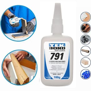 O produto é ideal para plásticos, como PVC, acrílico e policarbonato. É indicado aos demais substratos como madeira, couro, metais, entre outros, com alto desempenho. Especificações: - Marca: Tek Bond - Cód. Fornecedor: 20561002704 - Quantidade: 1 unidade - Viscosidade cP : 10 - 30 - Temperatura de Trabalho ºC : -55 - 80 - Preenchimento de Folgas mm : Até 0,05 - Resistência ao Cisalhamento Aço x Aço : 100Kgf/cm2 - É um produto monocomponente e não requer mistura - O processo de cura inicia-se quando uma fina camada de adesivo é aplicada entre as superfícies, entrando em contato com a umidade do ar atmosférico - Peso: 100g - Garantia: 90 dias pelo fabricante