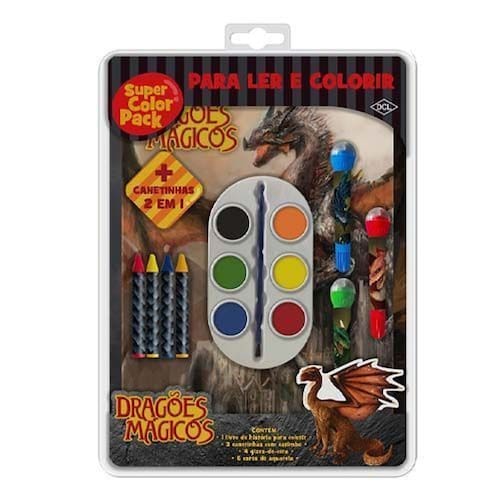 Brinque e se diveirta com os Dragões Mágicos. Este blíster inclui livro para ler e colorir, gizes de cera, paleta de aquarela e canetinhas com carimbos acoplados.