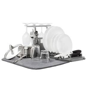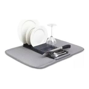 Tapete Absorvente de Microfibra: Com 60 cm de comprimento e 43 cm de largura, o tapete absorve rapidamente a umidade, proporcionando uma superfície seca e macia para suas louças, copos e utensílios.