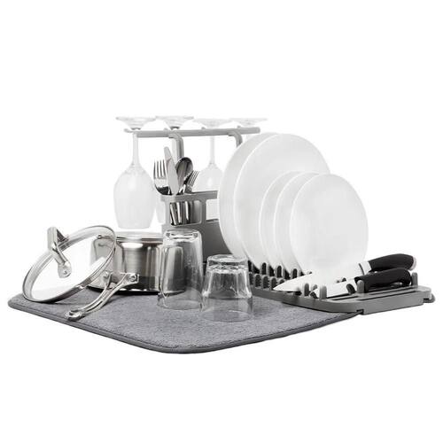 Facilite a rotina na cozinha com o prático e versátil Tapete Escorredor de Louças Dobrável Multifuncional com Microfibra Este conjunto é ideal para uma secagem rápida, organizada e eficiente, além de economizar espaço em sua bancada, sendo perfeito para uso em casa ou em viagens.
