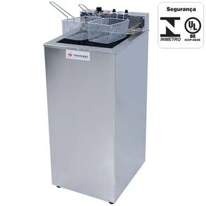 DETALHES - Super Fritador De Gabinete; - Super Capacidade De Fritura; - Baixo Consumo Com Alto Rendimento Nas Frituras; - Equipamento De Acordo Com A Portaria 371/09 Do Inmetro, Com Selo De Conformidade Expedido Pelo Mesmo; - Pés Com Regulagem De Altura. - Equipado Com Resistência E 3 Termostatos, Sendo 1 Externo Para Controle De Temperatura De 80 C À 180C E 2 Internos, Que Servem De Limitador De Temperatura; - Corpo Externo Em Aço Inox 430; - Cuba Interna (Depósito De Água E Óleo) Em Aço Inox 304; - Modelo Em 220V, monofásico; - Não acompanha tomada. Deve ser instalado com disjuntor; - Fabricado Por Padrão Com Dois Cestos; - Garantia 3 Meses Legal Mais 3 Meses Pela Fábrica.