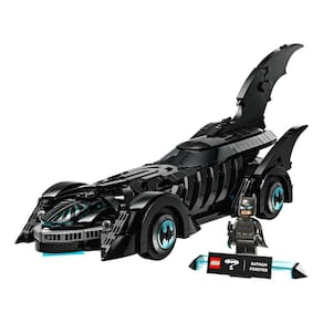 Esta recriação autêntica do icônico carro do filme Batman Eternamente apresenta um para-brisa moldado, rodas móveis, decorações e um cockpit que se abre para revelar um interior detalhado.