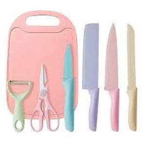 Super Jogo De Facas Gourmet Colorida 4 Facas, Tesoura Descascador tábua