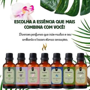 Kit de essências composto pelas fragrâncias: Lavanda Bamboo Flor de cerejeira Alecrim Casa limpa Flor de laranjeira Capim limão Jasmim Maçã verde Eucalipto
