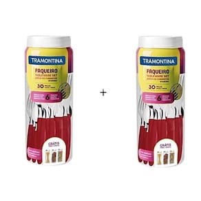 O pote plástico com design moderno que acompanha o produto é ideal para armazenar alimentos ou guardar os talheres, tornando o faqueiro muito prático de ser armazenado. Além disso, os talheres são muito fáceis de limpar e podem ir à máquina de lavar louças. Praticidade e qualidade é com os talheres Tramontina.