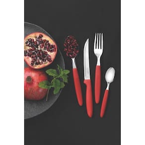 Para você manter o charme na sua cozinha, o faqueiro Tramontina Ipanema com lâminas em aço inox e cabos de polipropileno vermelho com pote plástico 30 peças é a escolha perfeita Os talheres têm lâminas produzidas em aço inox que oferecem maior durabilidade devido ao tratamento térmico, e ainda, cabos em polipropileno na estilosa cor vermelha, proporcionando um manuseio super leve e confortável, além de deixar sua mesa muito mais bonita.