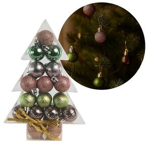 Super Kit com 68 Bolas de Natal Verde e Rosê – Texturas Variadas | 3cm | Embalagem em Formato de Pinheiro
