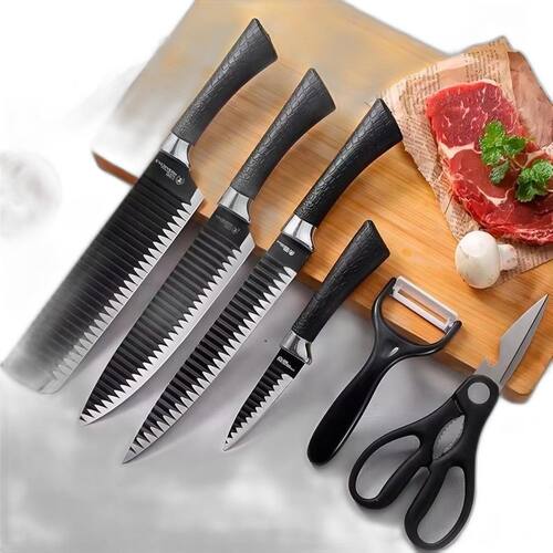 Super Kit De Facas Cozinha Churrasco Premium Inóx 6 Peças Jogo Kit Super Facas Cozinha Churrasco Chef Cerâmica Inox Preto Aço 304